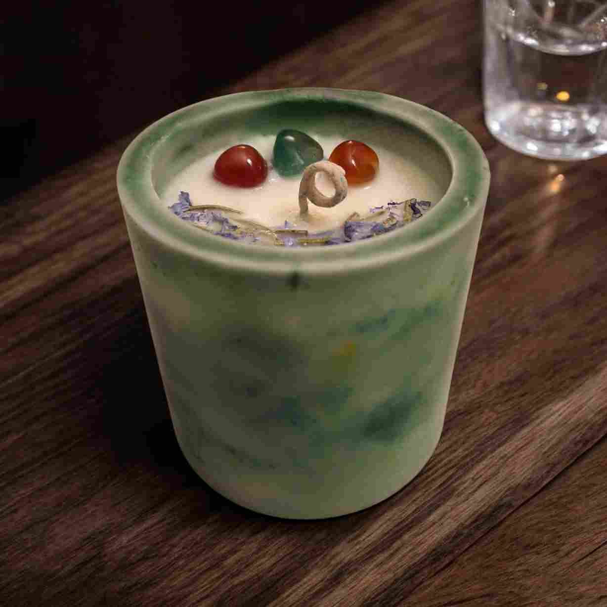 Uno de nuestros productos estrella es la vela fanal, cuya característica principal es su hermoso contenedor elaborado artesanalmente con parafina que no se derretirá durante el quemado o la duración de dicha vela, el acabado puede ser es marmoleado con colorantes especiales o con incrustaciones de flores, hojas, frutos y/o especias, brindando formas y colores caprichosos, al mismo tiempo cuenta con un relleno de cera de soya con deliciosas fragancias y bellas aplicaciones. ¡Incluye base de cemento para mayor seguridad durante su quemado!